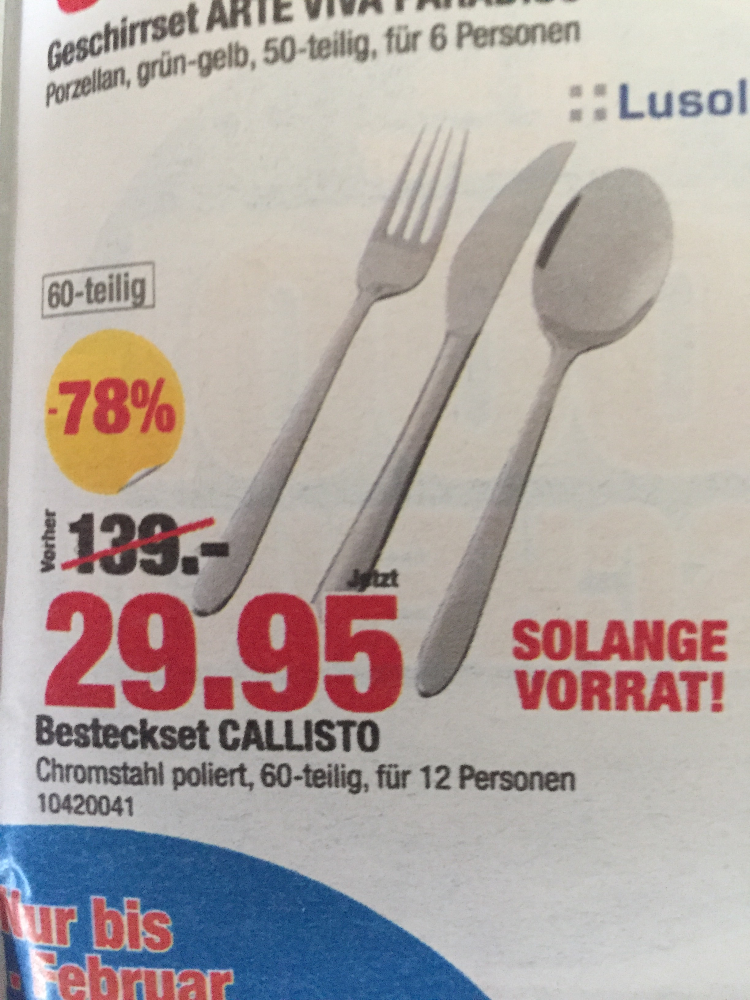 Bei Lipo gibt es das 60 teilige Besteckset Callisto von Lusol für nur 29.95 statt 139.- Fr. Für ein 12 Personen Chromstahl Gedeck dieser Qualität ein tolles Schnäppchen! Online und InStore erhältlich.