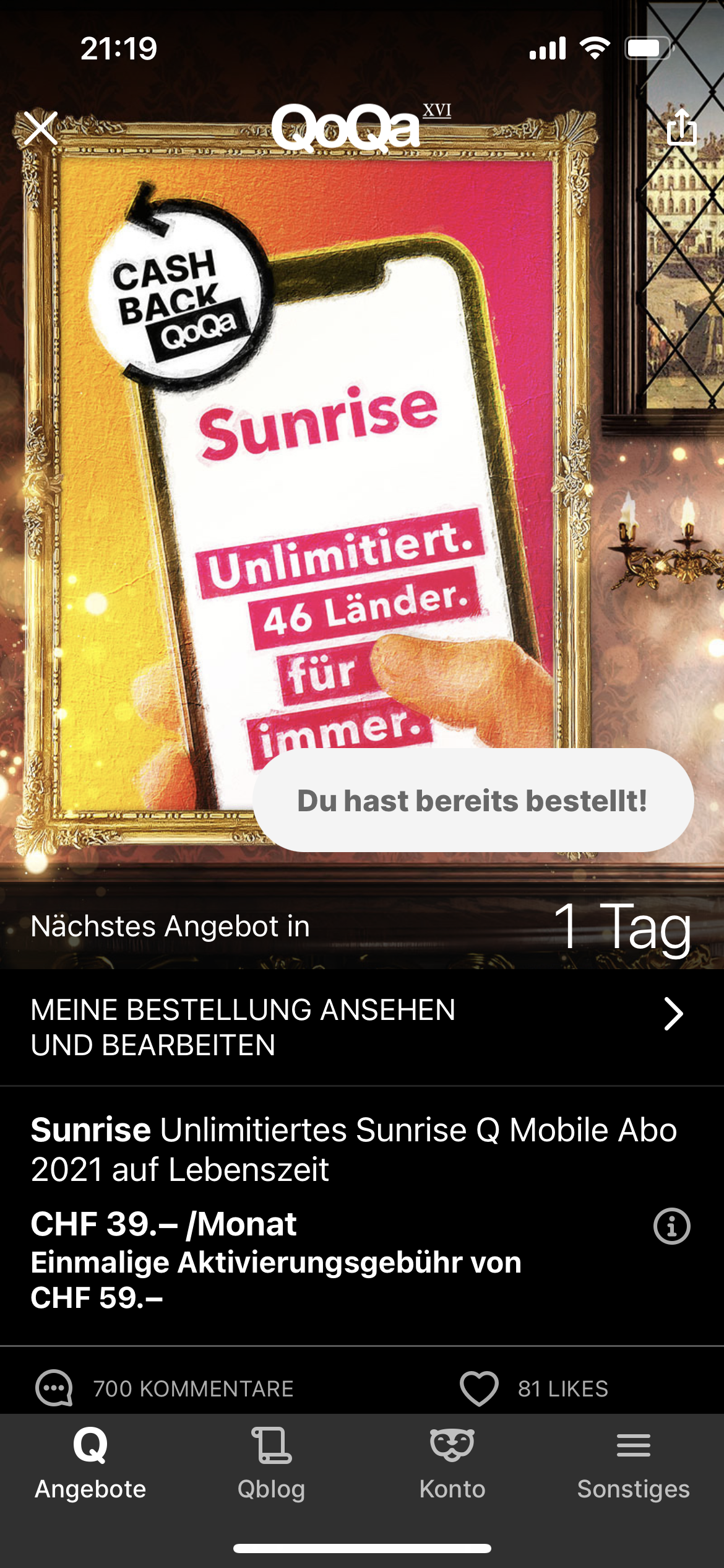 cheese76 hat den neuen Beitrag QoQa Sunrise unlimitiertes Abo geschrieben vor 3 Jahren, 11 Monaten