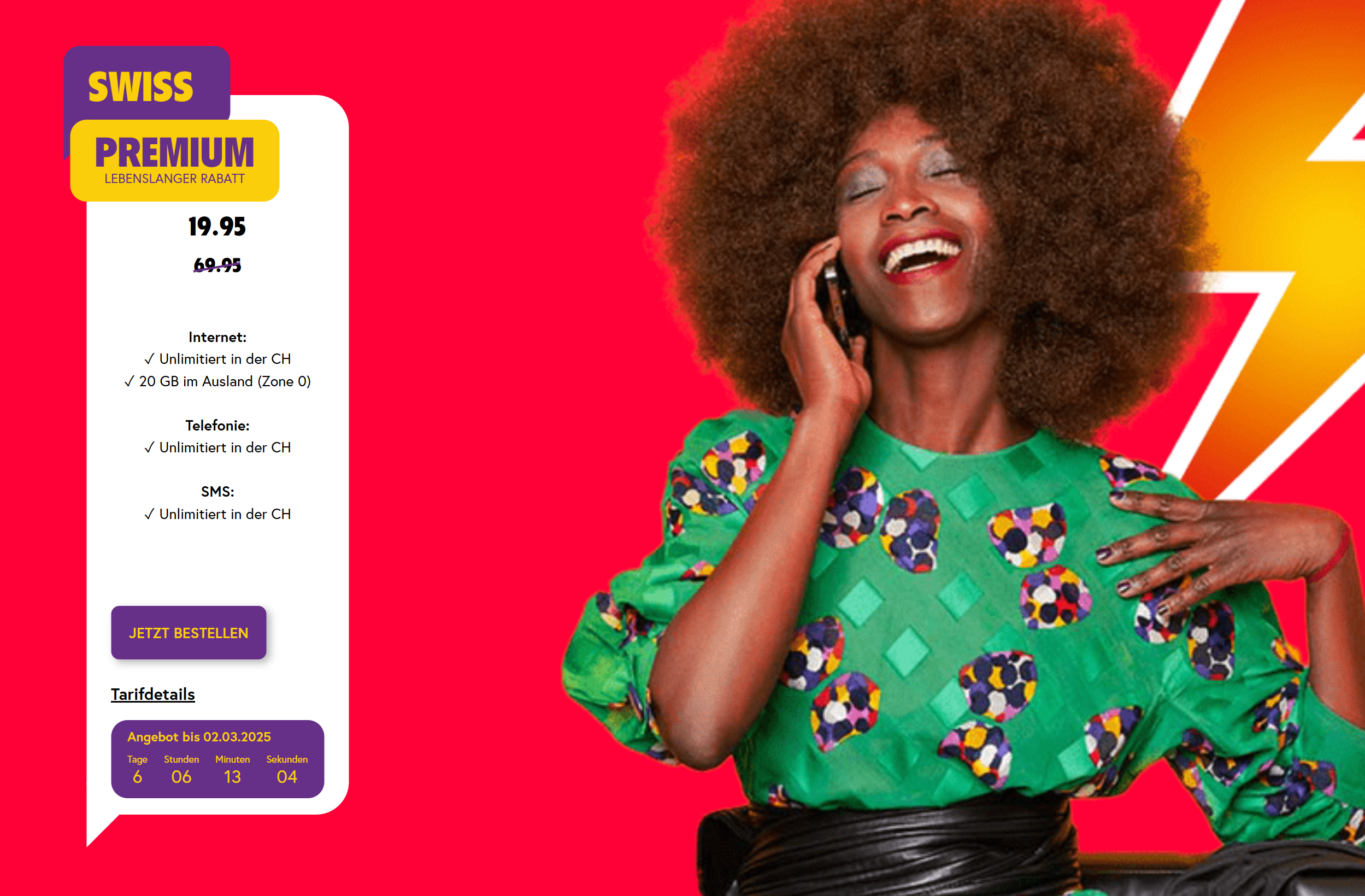 Arlinda hat den neuen Beitrag TalkTalk Swiss Premium (CH alles unlimitiert inkl. 5G, 20 GB Roaming im Ausland) geschrieben vor 11 Monaten, 2 Wochen