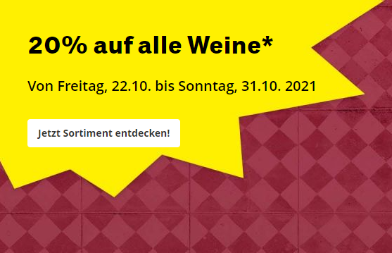 Bei Denner gibt’s nur am Freitag und Samstag 29.10. und 30.10.2021 20% Rabatt auf alle Weine und Lindt-Produkte, auch auf bestehende Aktionspreise.