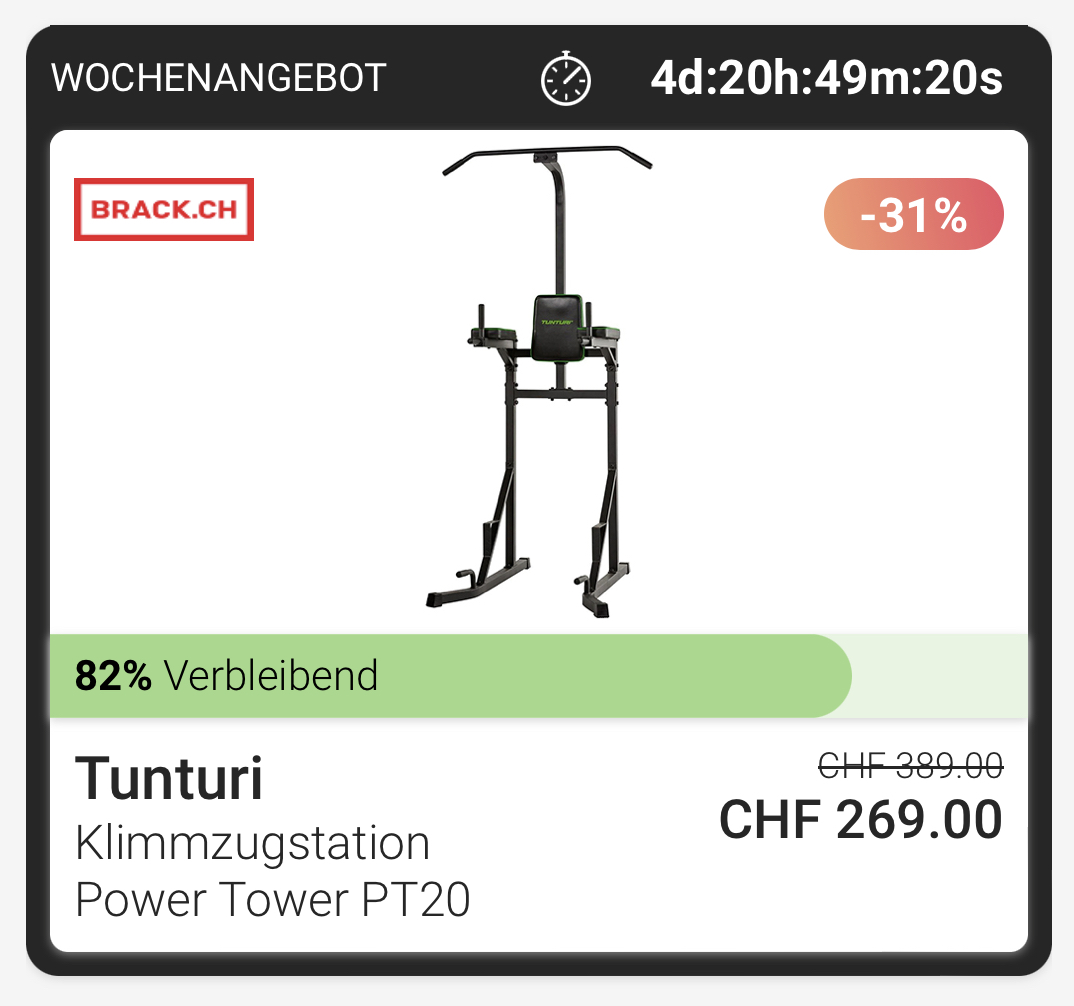 In Twint (unter super deals) gibt es aktuell eine Klimmzug-Station im Angebot für chf 269.-.