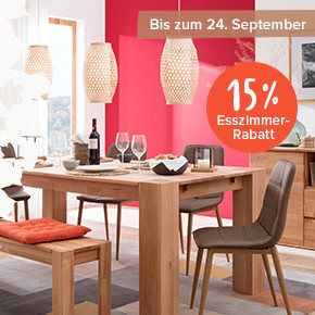 home24 bietet dir aktuell einen Rabatt in Höhe von 15% auf Esszimmermöbel! Diesen kannst du noch bis einschliesslich 24. September nutzen, also hast du noch mehr als genug Zeit zum Sparen.