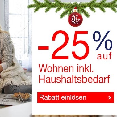 Quelle bietet dir heute und morgen ein unschlagbares Angebot! So bekommst du einen Rabatt von ganzen 25% auf alles aus dem Bereich Wohnen, was auch den Haushaltsbedarf mit einschliesst.