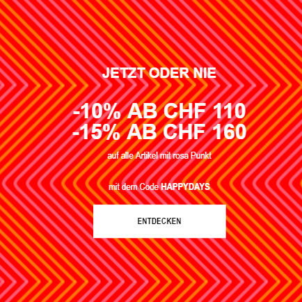 Sarenza hat aktuell eine Aktion, mit der man viele Artikel um bis zu 15% reduziert bekommen kann. Dabei handelt es sich um einen Staffelrabatt: Ab einem MBW von CHF 110.- gibt es einen Rabatt von 10%. Wenn man im […]
