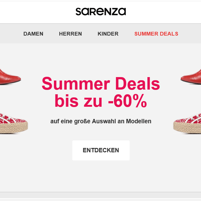 Sarenza ermöglicht es dir noch bis Mittwoch, den 23. August, um 11 Uhr, beim Kauf von Sommerschuhen noch einmal kräftig zu sparen. Die Sommermodelle sind um bis zu 60% reduziert. Aber es lohnt sich, schnell zu s […]