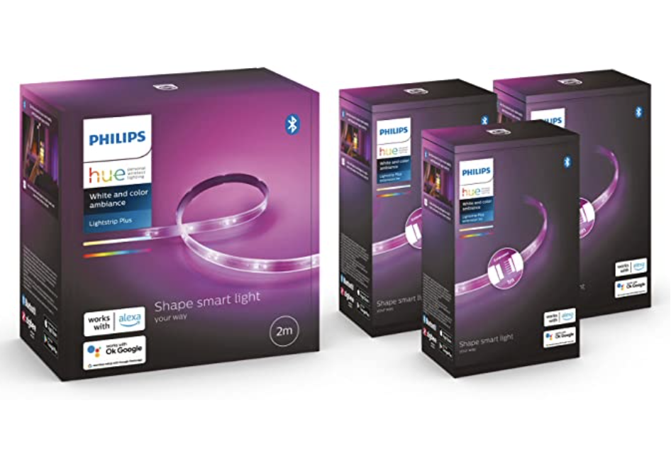 Philips Hue White & Col. Amb. Lightstrip Plus 2m Basis + Lightstrip Plus 3m Erweiterung, 16 Mio. Farben, steuerbar via App, kompatibel mit Amazon Alexa (Echo, Echo Dot)