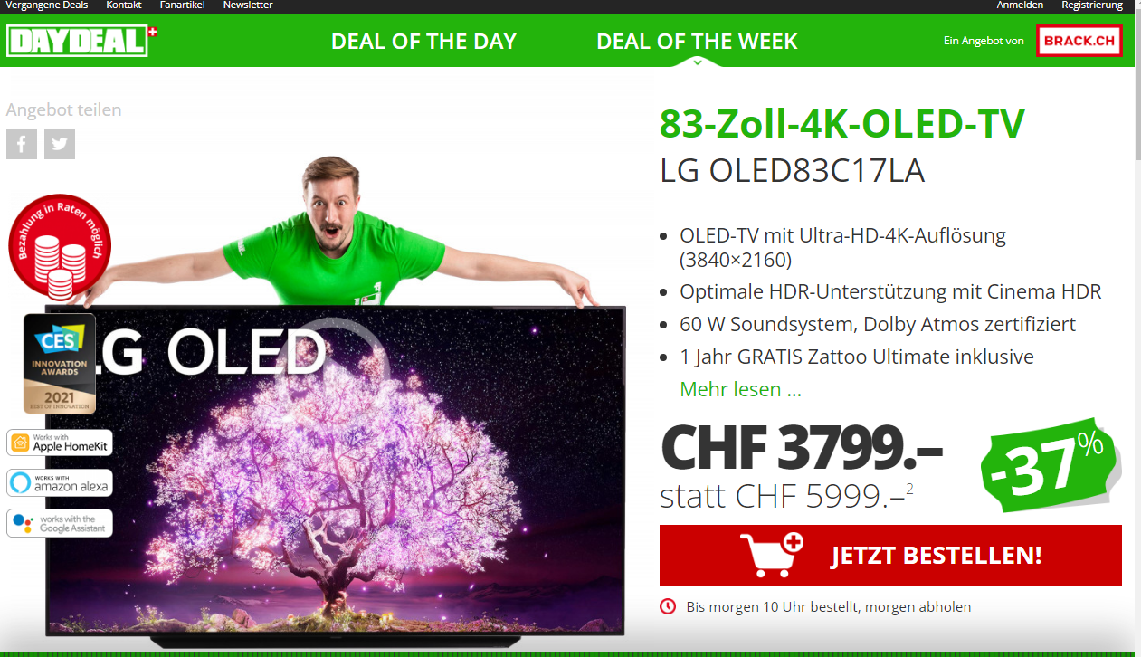 Bester TV Deal bei digitec meiner Meinung nach – Alle Jahre wieder. LG OLED65C37 zum absoluten Bestpreis. 100.- günstiger als Media Markt Black Friday Angebot