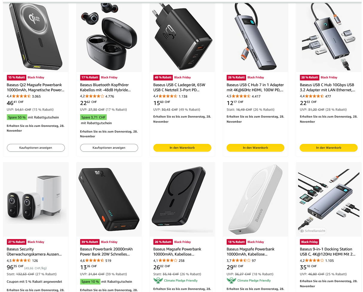 Aufgrund der Vielzahl der Angebote in der Black Week von Baseus gibt es hier mal einen Sammeldeal, mit Bestpreis-Angeboten von Amazon. Genannte Preise sind inkl. 6,47 Franken Versand mit Prime entsprechend […]