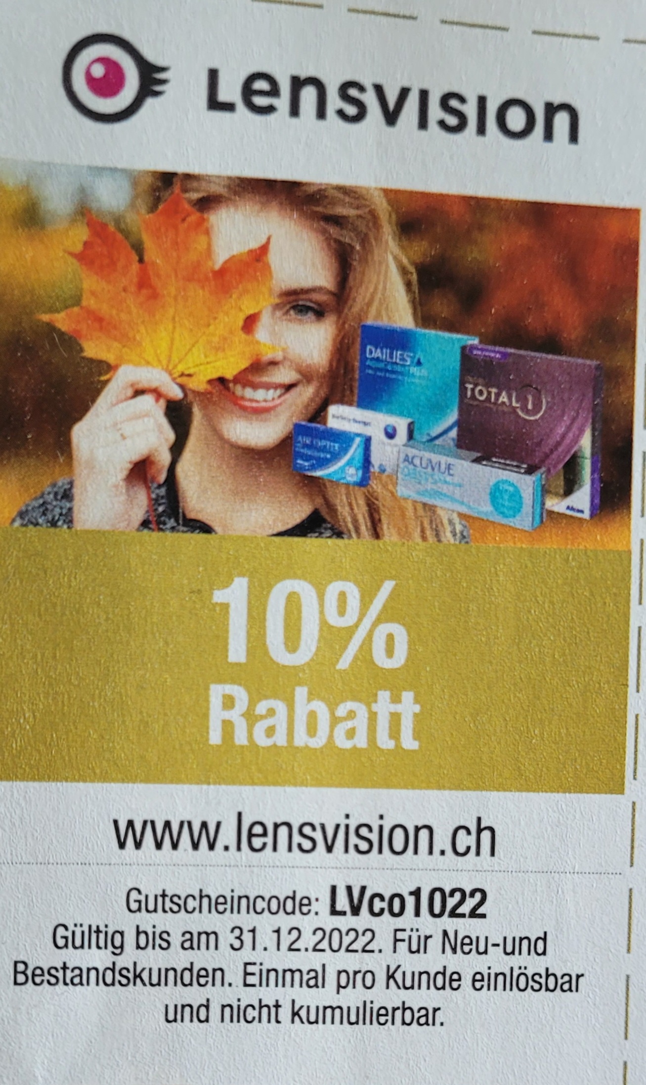 20CHF Gutschein ist nur einmalig guitig, at einemEinkauf von 99CHE bis zum 31.10.2023.