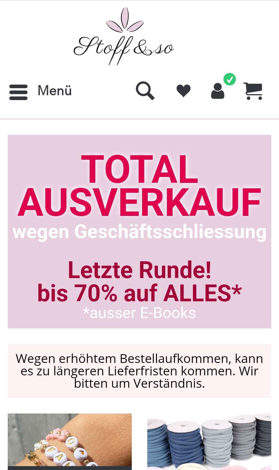 GlimmerGlitzer hat den neuen Beitrag Bis zu 70% wegen Geschäftsaufgabe bei Stoff&so geschrieben vor 1 Jahr, 10 Monaten