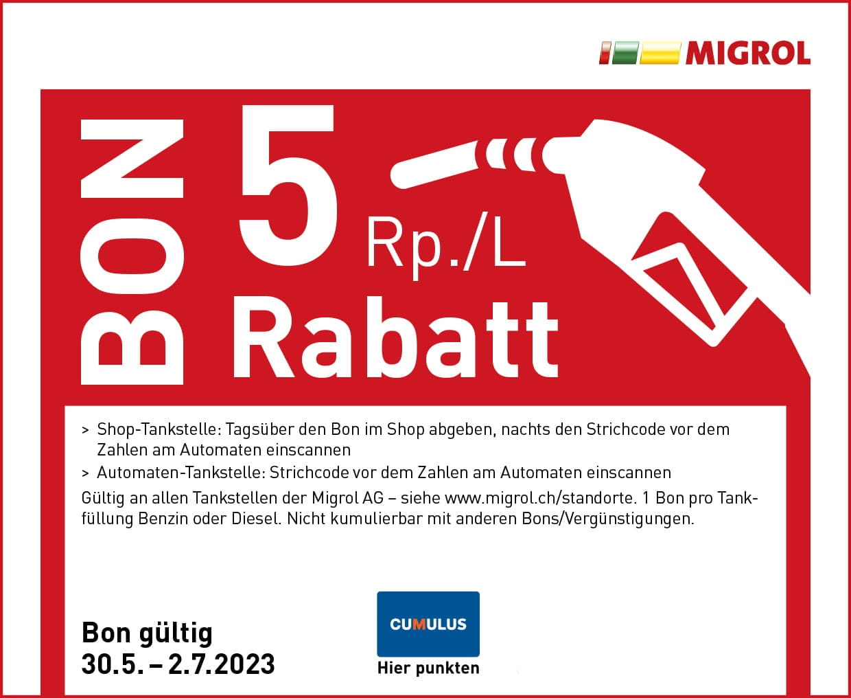 Bei der Migrol könnt ihr wieder von einem neuen Gutschein profitieren! Auch dieses Mal gibt’s leider “nur” 5 Rappen pro Liter Rabatt.