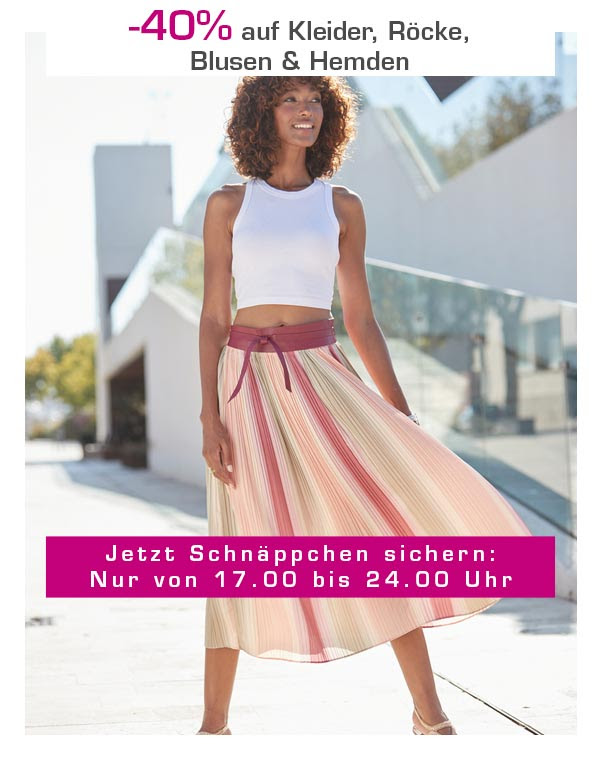 Bei Jelmoli-Shop profitiert ihr nur bis Mitternacht wieder von 40% Rabatt auf Kleider, Röcke, Blusen & Hemden! Gebt dazu einfach den im Gutscheinfeld hinterlegten Rabattcode an der Kasse ein.