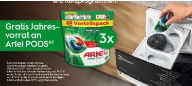 Gutschein-Helfer hat den neuen Beitrag Stock de lessive gratuit : 150 Ariel PODS® pour l'achat d'un lave-linge Electrolux UniversalDose geschrieben vor 3 Monaten, 1 Woche