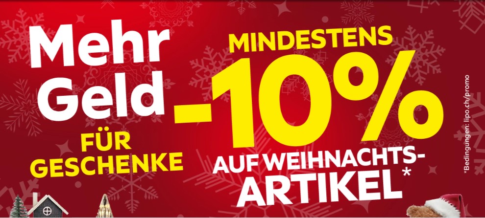 Bei LIPO Schweiz startet der grosse Weihnachts-Sale: Sichere dir mindestens 10 % Rabatt auf eine Vielzahl an Weihnachtsartikeln!