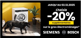 Conforama propose en ce moment une action très intéressante sur une sélection de gros électroménager Siemens et Bosch : profite de 20% de réduction supplémentaires sur une gamme d’appareils performants. L’offre […]