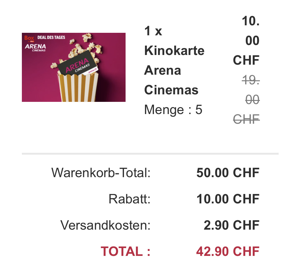 HansKontrolliert hat den neuen Beitrag 5 Kino Tickets für Arena Cinemas ab 8.58 inkl. Versandkosten pro Ticket geschrieben vor 2 Jahren, 2 Monaten