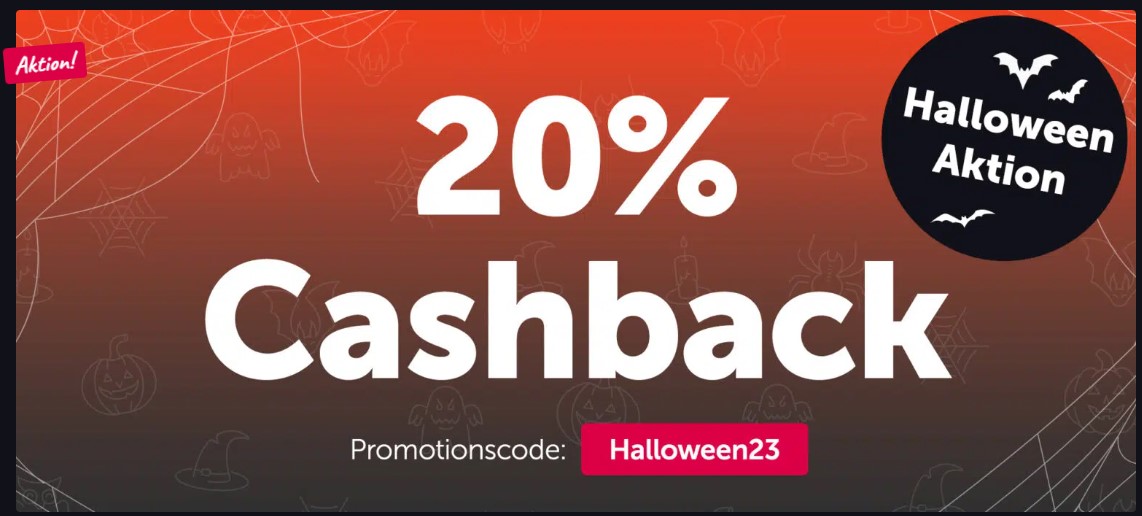 Profitiere mit dem Halloween Special von 20% Cashback auf alle Neubestellungen!