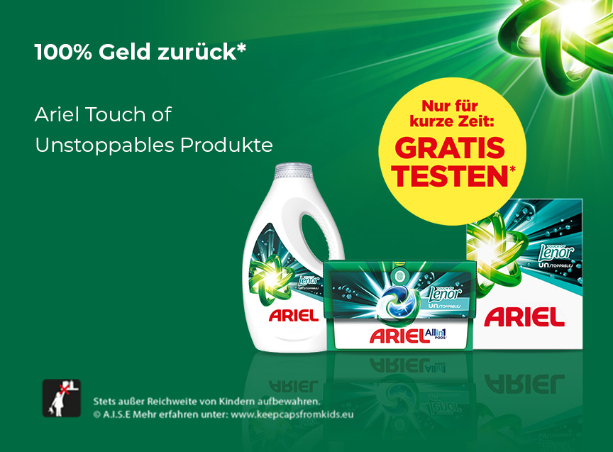 Ab sofort kann man das neue Waschmittel von Ariel gratis testen: Pro Person bekommt ihr das Geld für eine Packung Ariel Frische Baumwollblüte zurück.