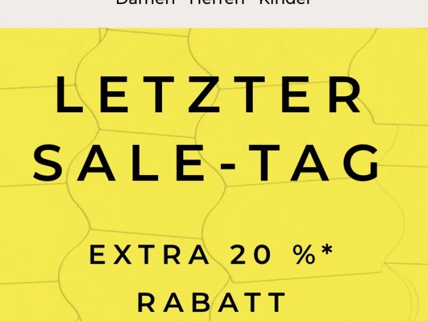 Letzter Tag mit zusätzlichen 20% Rabatt auf alles im Sale.