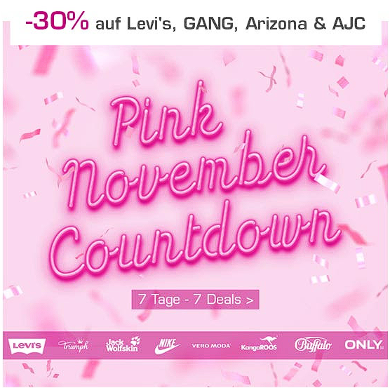 Aktuell gibt es auf die Marken Levi’s, GANG, Arizona, AJC 30% Rabatt.