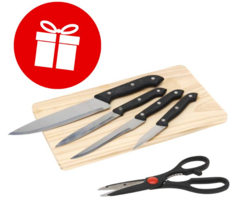 Bei Pearl gibt es nur heute ein gratis Messerset mit Schere und Brett, 6-tlg. Schneideset zu ergattern. Einzig die Versandkosten in der Höhe von CHF 8.95 müsst ihr bezahlen.