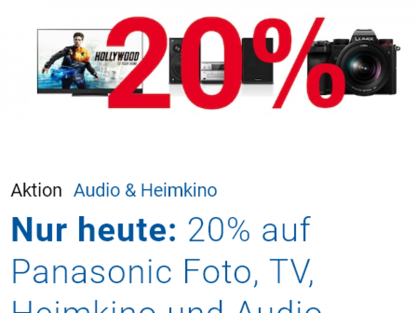 Heute gibt es bei digitec 20% auf Foto und TV Artikel von Panasonic.