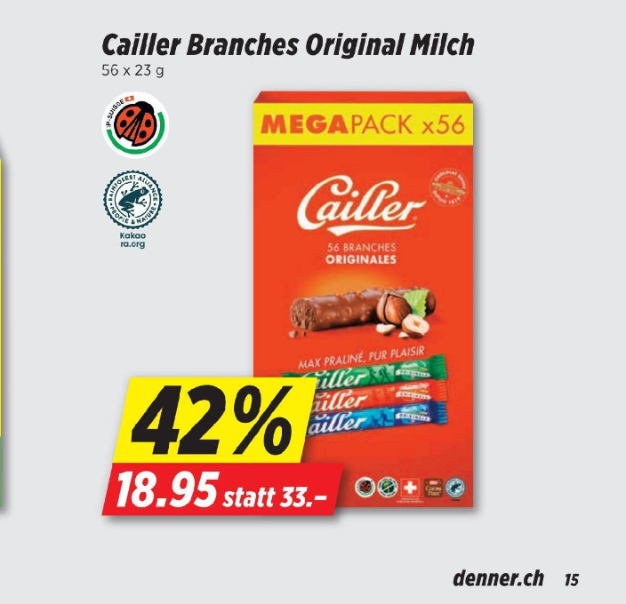 In Denner findet ihr die Cailler Branches Original mit 56 Stück à 23g für CHF 18.95 statt CHF 33.-.