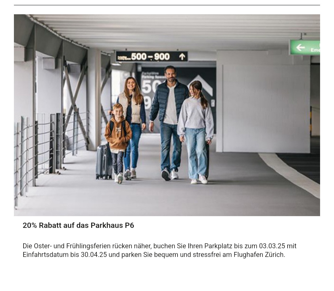 Die Oster- und Frühlingsferien rücken näher, buchen Sie Ihren Parkplatz bis zum 03.03.25 mit Einfahrtsdatum bis 30.04.25 und parken Sie bequem und stressfrei am Flughafen Zürich.