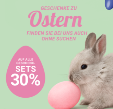 Bei Import Parfumerie gibt es passend zu Ostern 30% Rabatt auf alle Geschenk-Sets im Online Shop und in den Filialen. Die Aktion ist nicht kumulierbar mit laufenden Angeboten.