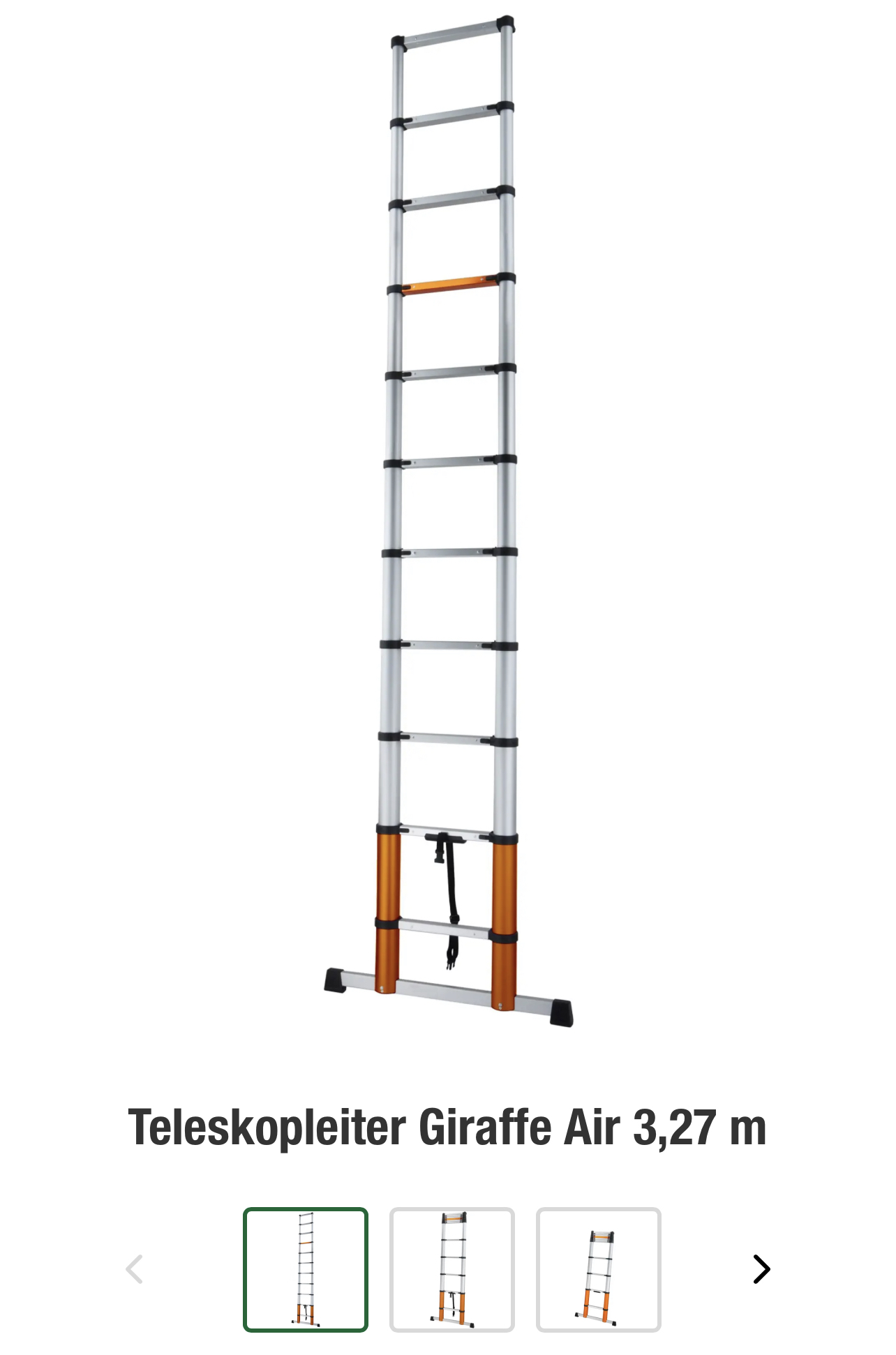 Kugelkopf hat den neuen Beitrag 50% auf Teleskopleiter Giraffe Air 3,27 m bei Migros Do It geschrieben vor 3 Jahren
