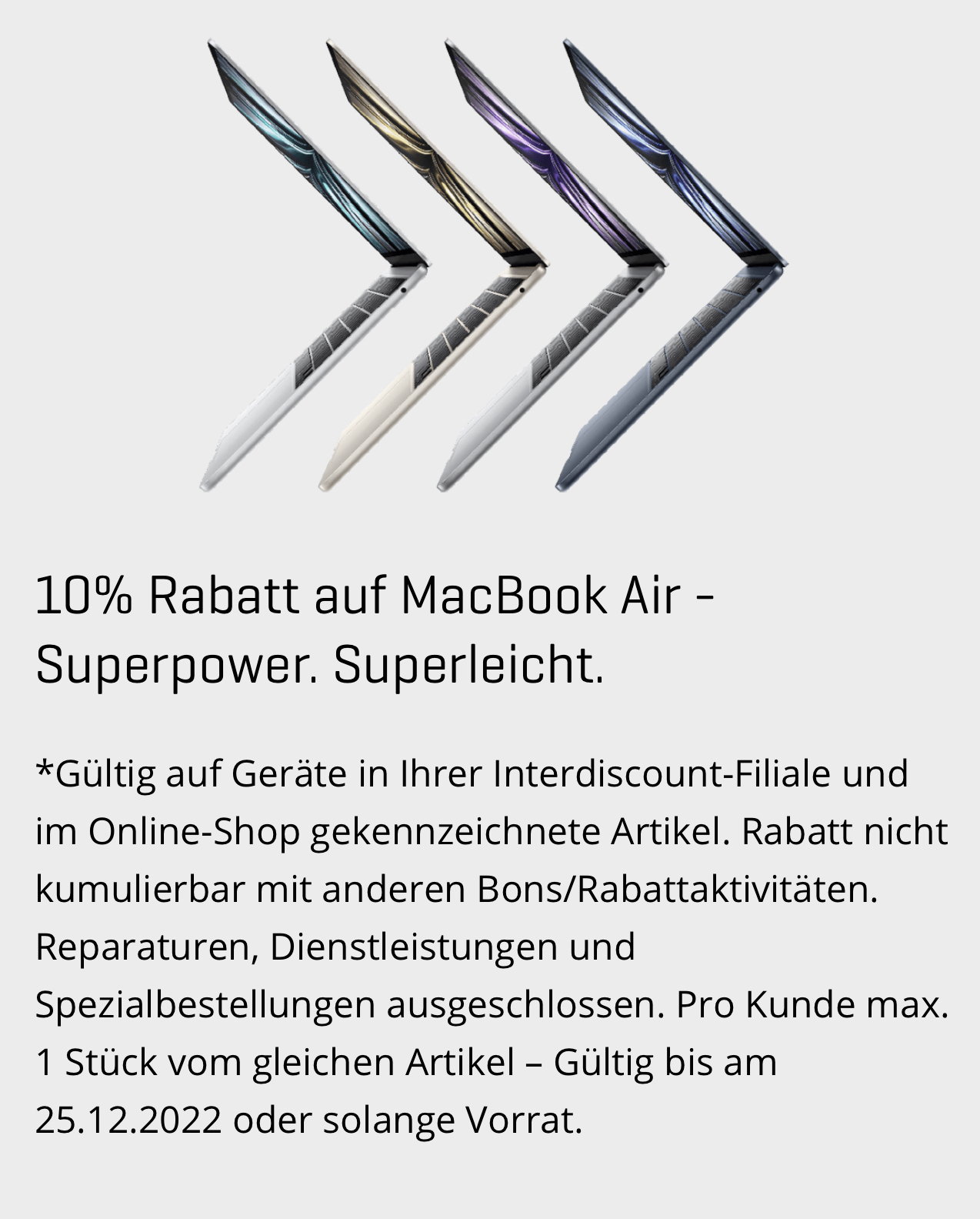 Bei Interdiscount gibt es heute 10% auf MacBook Air Notebooks. Nur heute und nur 1x pro Person.