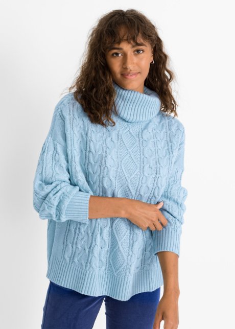 Bei Bonprix im Sale: Damen Gerippter Pullover mit Stehkragen in schwarz oder anthrazit in div. Grössen