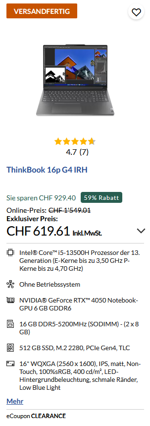 Bei Lenovo ist das Thinkbook 16p in der 4. Gen. mit der RTX 4050 um 200CHF nochmals günstiger geworden und mit 620CHF echt super zu dem was geboten wird. Einziger Wermutstropfen ist die geringe Bildschirmfrequenz […]