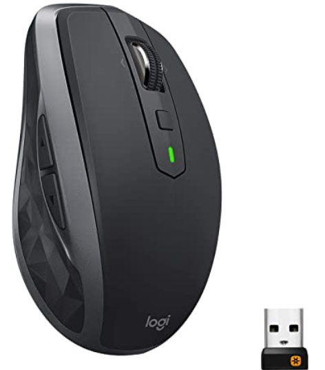 Logitech MX Anywhere 2S Kabellose Maus, Bluetooth und 2.4 GHz Verbindung via Unifying USB-Empfänger, 4000 DPI Sensor, Wiederaufladbarer Akku, Multi-Device, 7 Tasten, PC/Mac/iPadOS - Graphit/Schwarz.