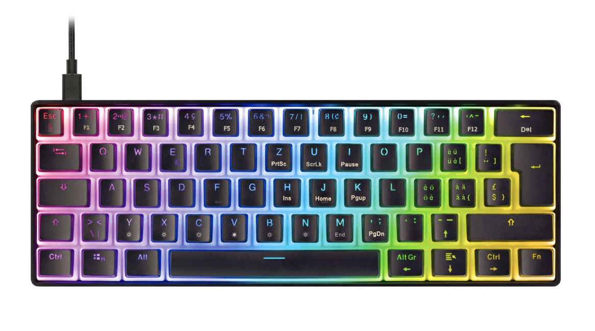 MediaMarkt bietet gerade die DELTACO GAM160TCH – Gaming Tastatur, Kabelgebunden, QWERTZ, 65% für 59.45 Franken an.