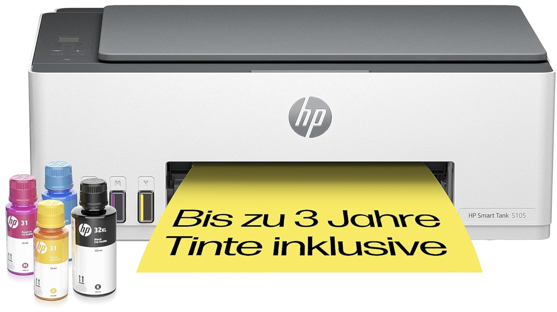 Amazon bietet gerade den HP Smart Tank 5105 3-in-1 Multifunktionsdrucker für 166.55 Franken an.