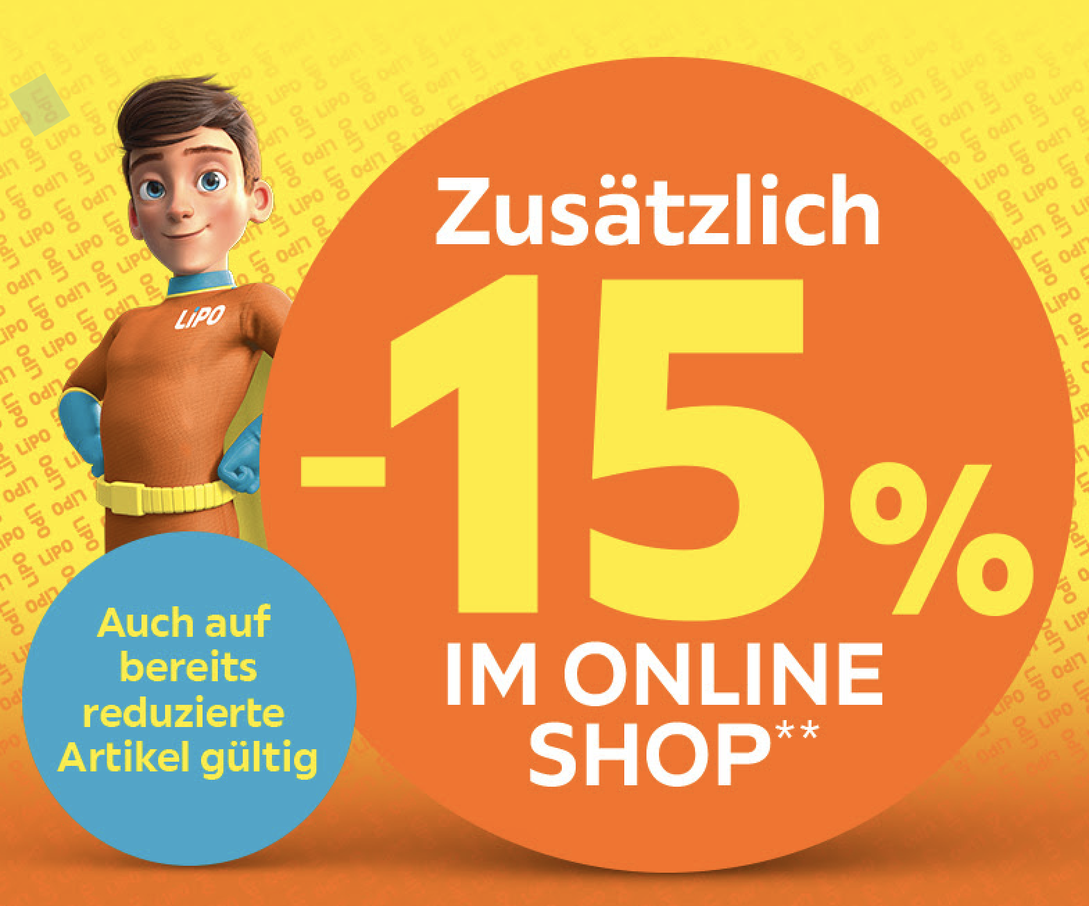 Nur noch heute gibt es bei Lipo – 15 % im Onlineshop.