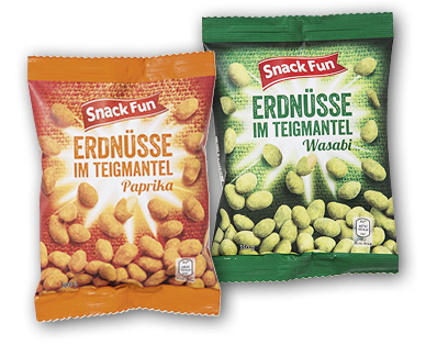 Bei ALDI gibt’s diese Woche - noch bis und mit Mittwoch - die Snack Fun Erdnüsse im Teigmantel (Paprika oder Wasabi) für CHF 1.49 statt CHF 1.99