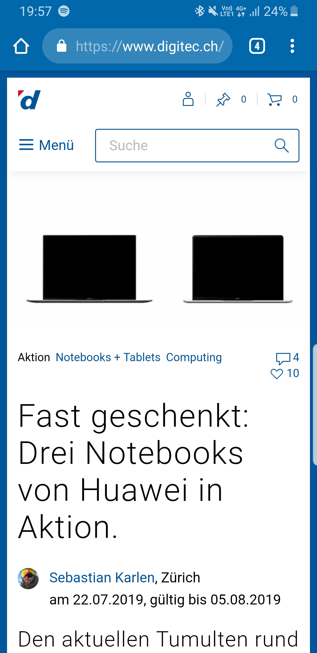 Digitec macht nach den schlechten Schlagzeilen zu Huawei Werbung für das Matebook (X). Das Angebot ist aber wohl das beste für das Matebbok X bis jetzt.