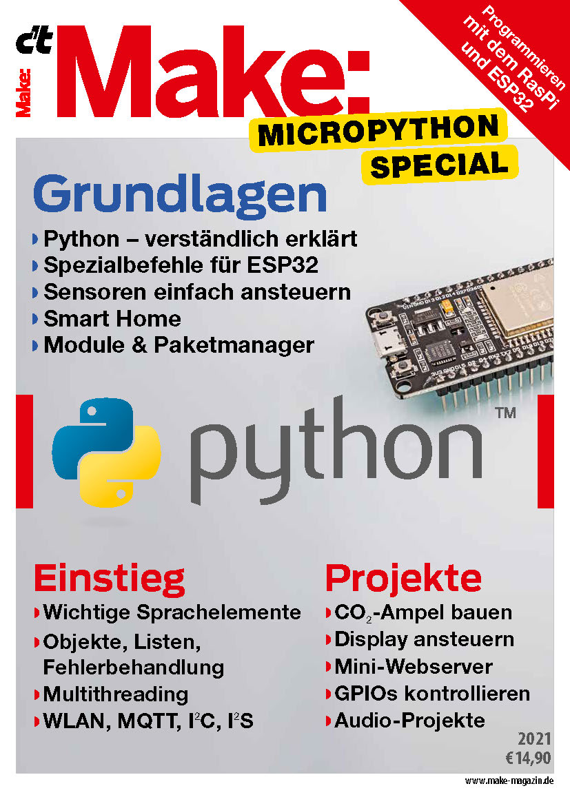 Aktuell gibt’s bei heise shop das Make MicroPython Special zum reduzierten Preis von CHF 0.50!