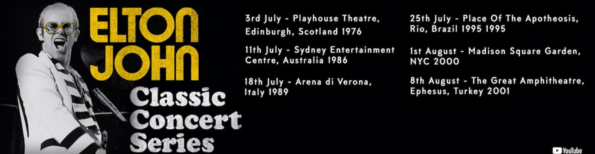 Elton John startet ab heute eine Classic Concert Series auf YouTube. Ab heute wird jede Woche ein neues gratis Konzert freigeschaltet.
