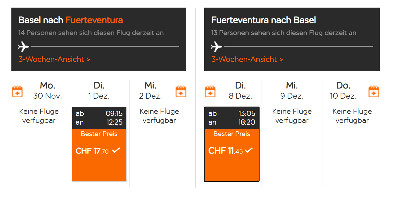 Bei EasyJet gibt’s gerade Flüge von Basel nach Fuerteventura und Retour inkl. Handgepäck ab 27 EUR.