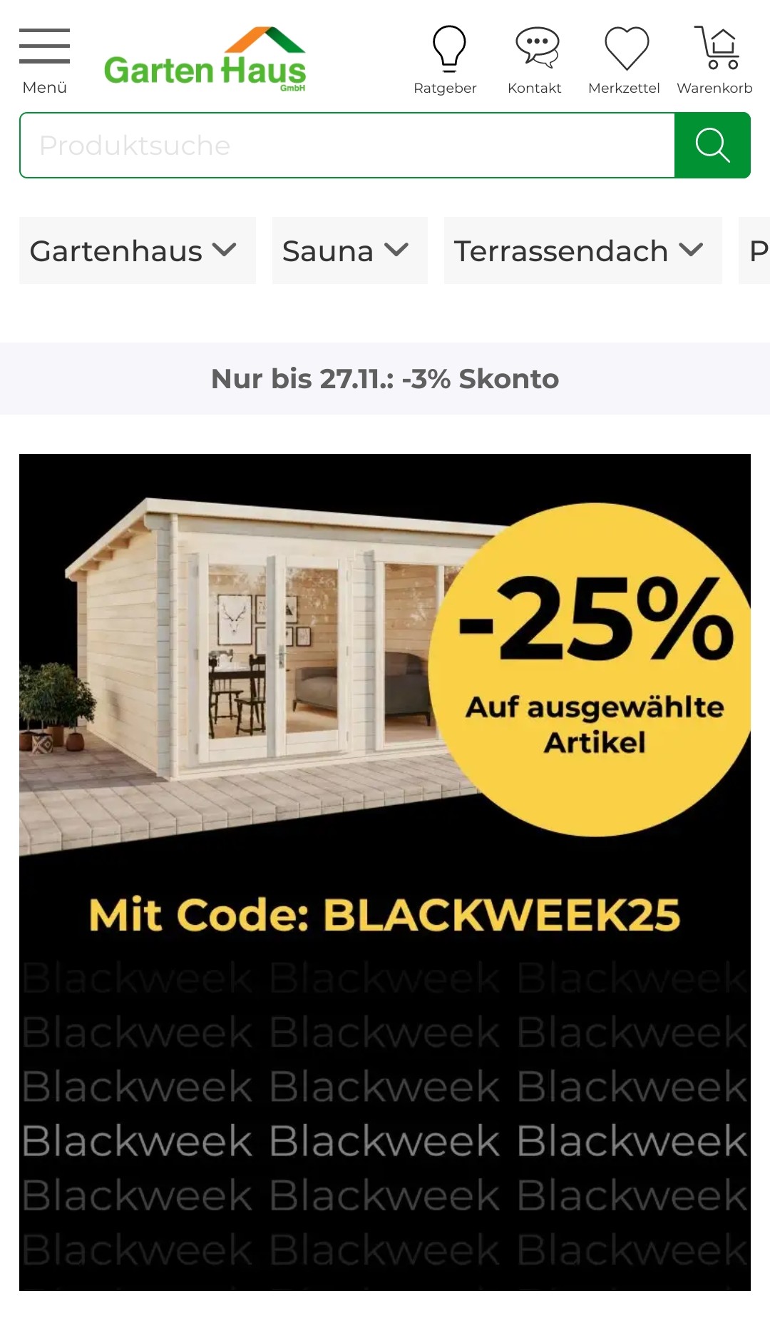 Rabatt am Blackfriday-Weekend: 25 % auf viele Gartenhäuser und festverbaute Pools. Ich habe keine Erfahrungen mit dem Händler, sieht aber seriös aus. Es werden zu den Häusern auch gleich empfohlenes Zub […]