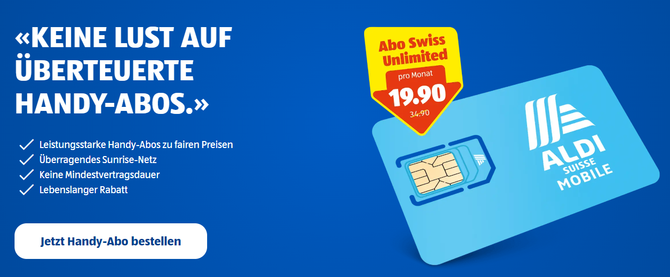 MGO16 hat den neuen Beitrag Neu! Aldi Mobile Abo Swiss Unlimited für CHF 19.90 (CH alles unlim. inkl. 5G) geschrieben vor 2 Jahren, 7 Monaten