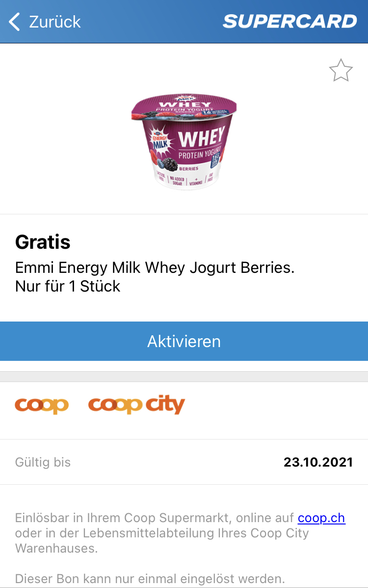 Ein Gratis Emmi Joghurt Waldbeeren Datteln 150g in der Coop Supercard App
