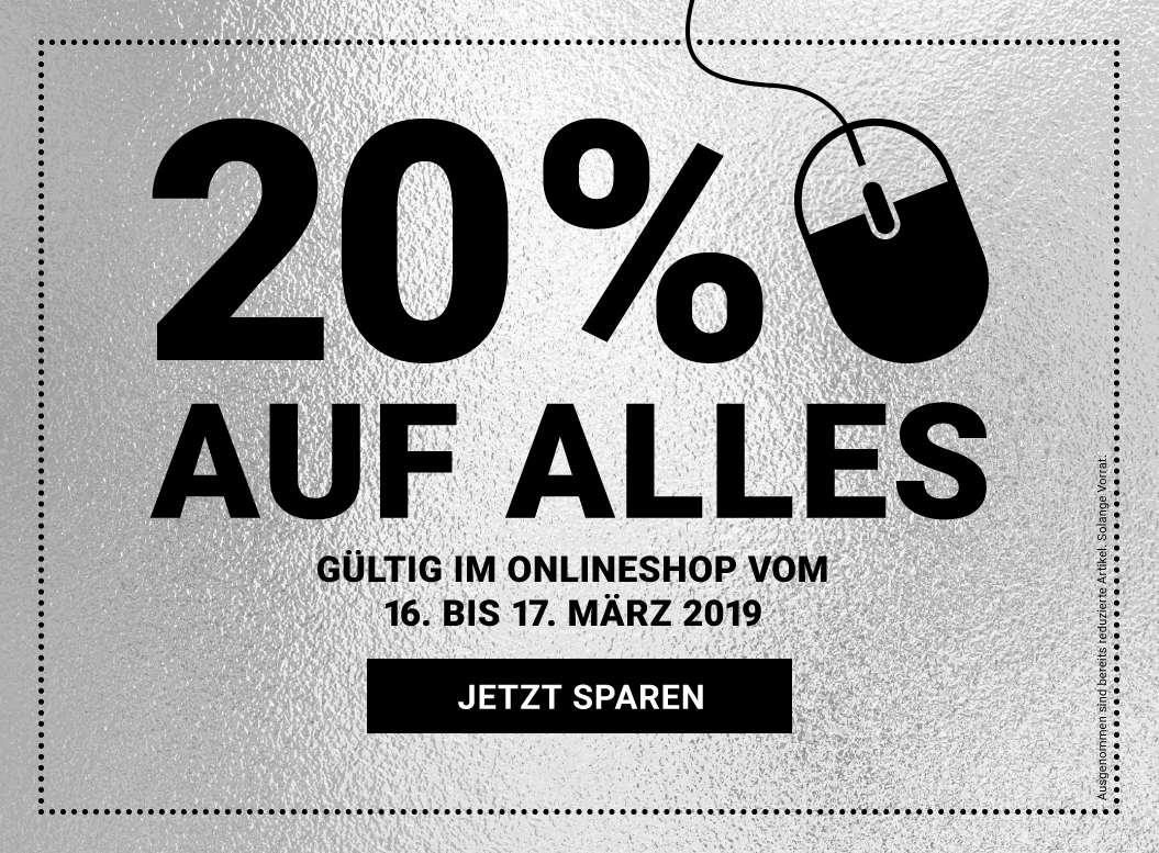 Kein Mindestbestellwert. Nicht mit anderen Rabatt-Aktionen kumulierbar. Nur gültig für nicht reduzierte Ware.
