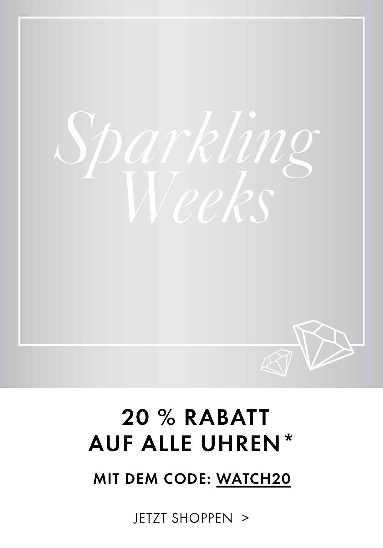 Mit dem Code: WATCH20 erhaltet ihr 20% Rabatt auf alle Uhren von/bei Swarovski.