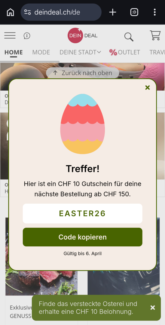 JonaX1 hat den neuen Beitrag 10 CHF Gutschein bei DeinDeal geschrieben vor 2 Stunden, 58 Minuten