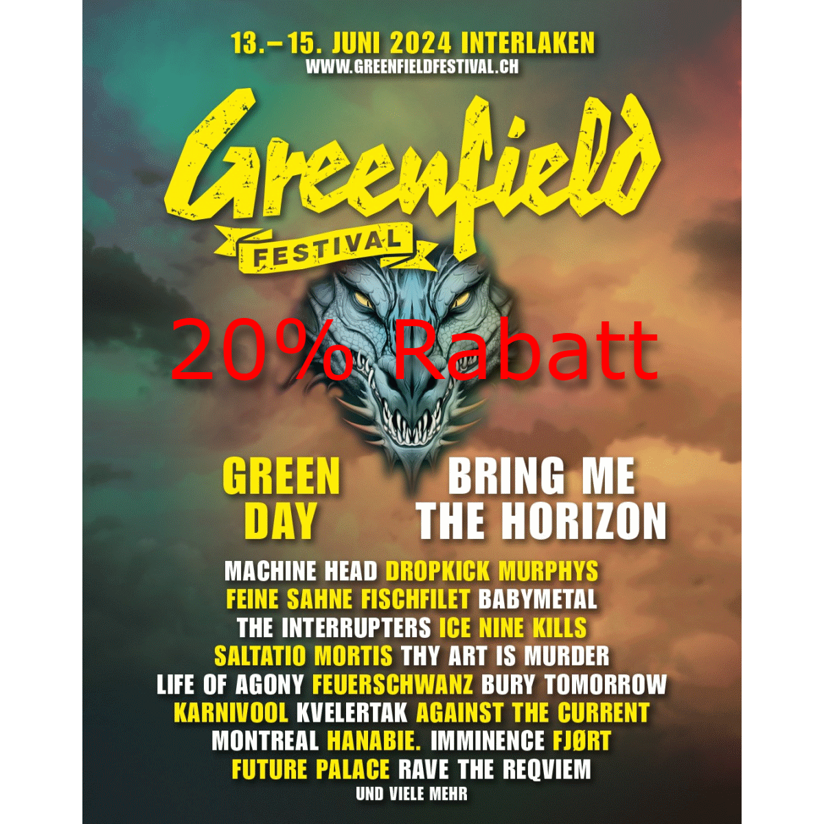 Heute gibt es zum Valentinstag 20% Rabatt auf den 3-Tagespass vom Greenfield Festival in Interlaken auf Ticketcorner.ch. Somit kostet der 3-Tagespass noch CHF 200.90 statt CHF 250.50