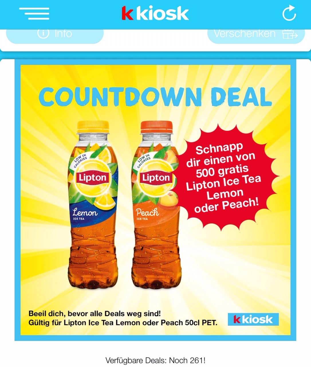 Es gilt schnell zu sein, über die kkiosk App gibt es gerade 500 Lipton Ice Tea gratis.